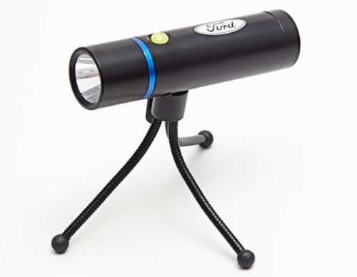Fully rechargeable Ford LED torch with a flexible tripod stand that enables you to point the torch at exactly the right spot and leave your hands free. An essential item in any emergency kit for cars, vans or pickup trucks.